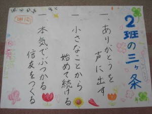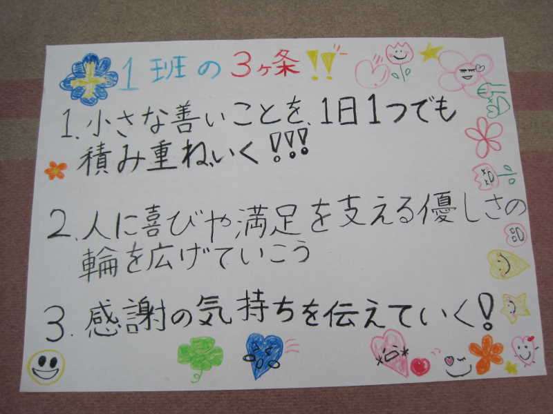 みんなで考えたこの三か条をみんなで守っていきましょう!