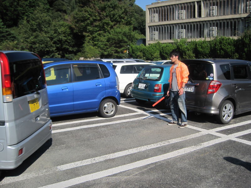 車でお越しの信者さん達にあいさつし、 駐車場整理ですヾ(・д・。)