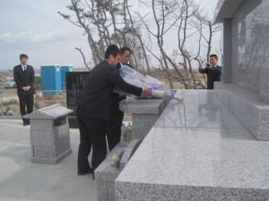 慰霊碑にて祈りを捧げる