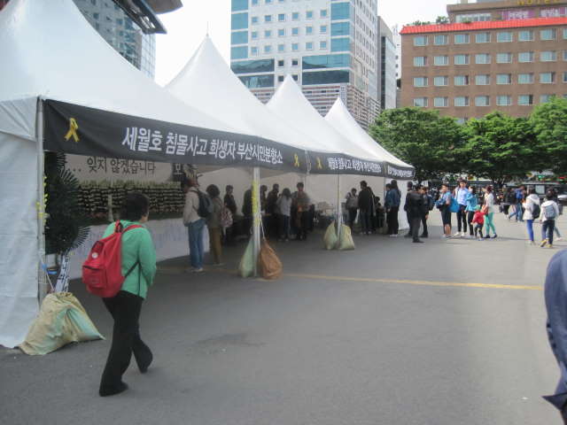 釜山駅で船の事故で亡くなられた方への慰霊を込め、お祈りをしました。